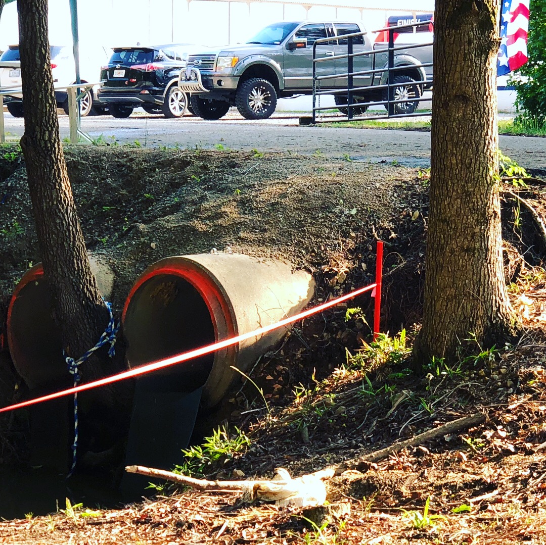 We continue on down a path hurdling over a number of logs and then winding us back into the stream and to our next longer drainage pipe. I had watched others do this in the morning and saw that all had let their dogs lead through. I did the same…
